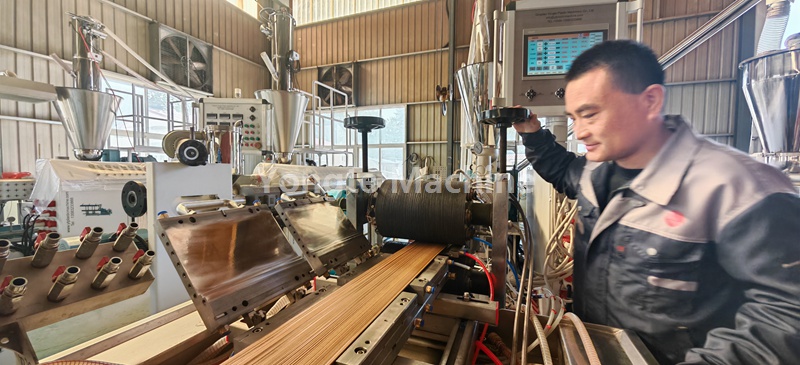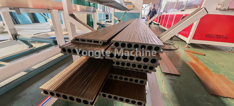 Heute haben wir unsere WPC-Profilmaschine für unseren Kunden aus Südafrika getestet. Wir haben alle bestellten Formen getestet und sehr schöne WPC-Terrassendielen/Wandpaneele/Zaunpaneele mit Online-3D-Prägung hergestellt. Die Tests waren mit stabiler Produktion, hoher Kapazität und guter Produktqualität sehr erfolgreich.