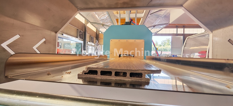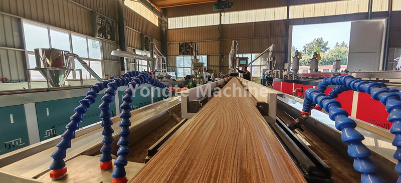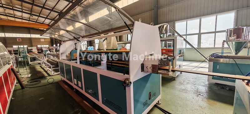 Diese WPC-Profilextrusionslinie ist mit einem automatischen Vakuumzuführsystem, einem hochwirksamen konischen Doppelschneckenextrusionssystem, einem SPS-Steuerungssystem, einer Online-3D-Prägemaschine, einem Wasser- und Vakuumkühl- und Kalibriertisch, einem Doppelraupenabzug, einer automatischen Schneidemaschine mit Staubabscheider und einem Produktstapler ausgestattet.
