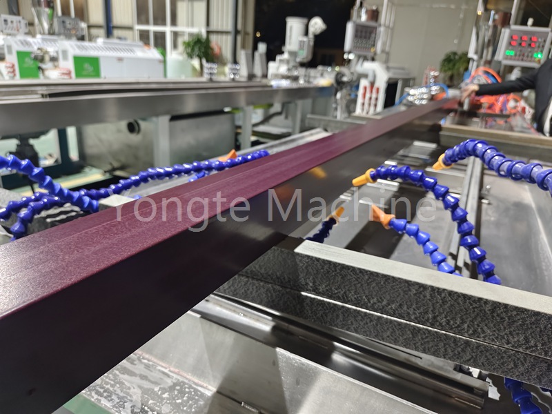 | Koextrusionsmaschine für WPC-Profile | 150 kg/Stunde | Es wird zum zweiten Mal zum Extrudieren und Zusammensetzen von Holz und Kunststoff verwendet. Es ist mit einem Extrusions-, Form- und Kühlsystem ausgestattet, um die WPC-Produkte in die erforderliche Größe und Form zu bringen. Der Kunde kann in dieser Maschine durch Wechseln der Form verschiedene WPC-Produkte herstellen |