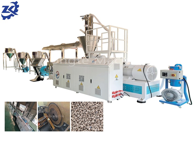 Die Mischung wird zur Yongte -WPC -Granulationsmaschine transportiert. Die WPC-Granulationsmaschine ist mit einem hocheffizienten parallelen Twin-Screw-Extruder ausgestattet, der speziell für die Zusammensetzung von Holzplastik, das heiße Pelletisierungssystem mit hoher Geschwindigkeit und ein schnelles dreistufiges Luftkühlsystem ausgelegt ist. Das Holzpulververhältnis kann 60-70%erreichen, und die produzierten WPC-Pellets sind gleichmäßig gemischt und gut plastizisiert, um die Qualität des Endprodukts zu gewährleisten.
